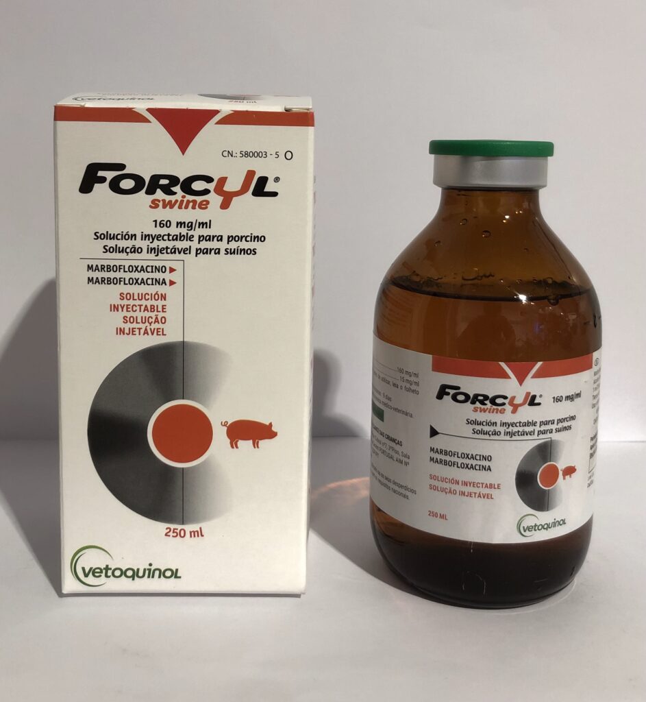 Antibiótico inyectable de amplio espectro para uso porcino.